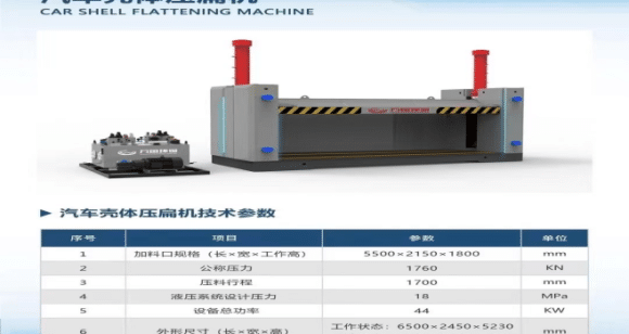 1、节省空间:报废汽车体积较大,占用大量场地空间。压扁机可将汽车压成扁平状,大幅减小体积。这样能在有限的拆解场…