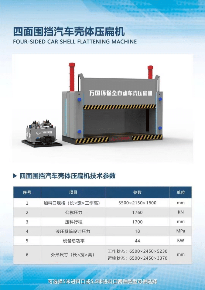 这种类型的压扁机结构相对简单,成本较低,但产生的压力相对较小,常用于小型报废车或对压力要求不高的场合。